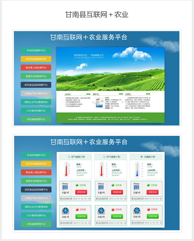 甘南县“互联网+”农业服务平台在九大领域开展物联网应用,农业方面将以精准农业,智能畜牧和智能水产养殖为应用切入点,推进物联网行业应用,建立智能农业综合应用平台,实现对重点农产品的智能管理和辅助决策,并开展农产品的电子商务和全程溯源服务。